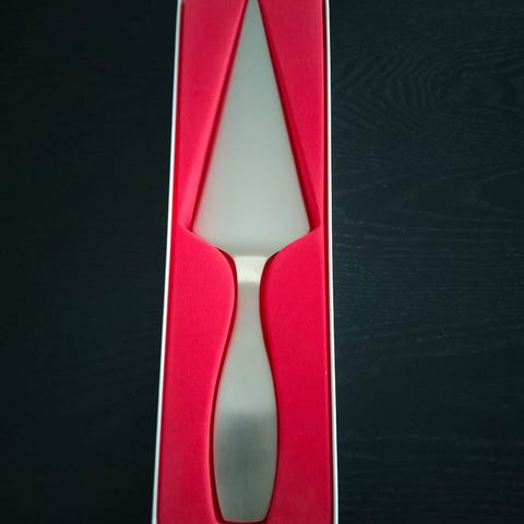 Käyttämätön kakkulapio jäänyt yli oman tarpeen. Tullut hankittua joskus Torista, jolloin kyllä myyjä "unohti" kertoa pienestä mainoslogosta kahvan alapinnassa - näkyy kuvassa.