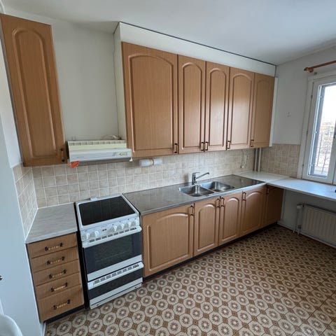 Kohtalaisessa kunnossa oleva keittiö
