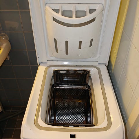 Toimiva Whirlpool päältä täytettävä pesukone.