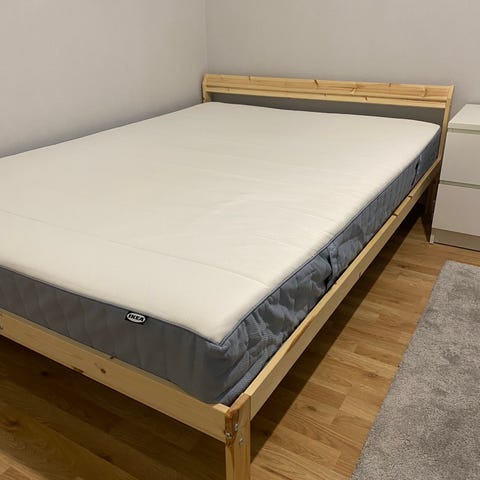 IKEA sänky säilytyslaatikoilla. Valkoinen runko, jossa useita vetolaatikoita vuoteen alla lisäsäilytystä varten. Patja ei kuulu mukaan!