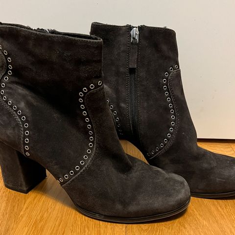 Naisten nahkaiset talvi-/kevät-/syksy nilkkurit. Koko 39. Kannan korkeus 4,5cm.