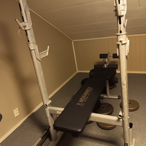 Ja kyykky/penkkiräkki. Säädettävä. Molemmat penkki ja kyykky korkeus.