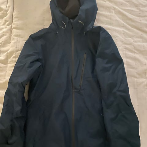 Musta/lila laskettelutakki. Takki on hyvässä kunnossa lukuunottamatta kahta hyvin pientä reikää mitkä näkyvät toisessa kuvassa.