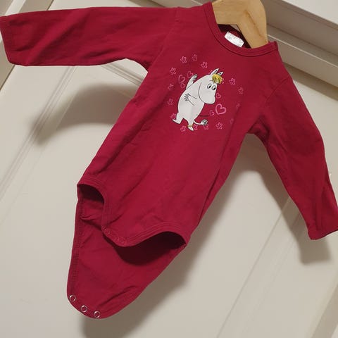 Moomin body koossa 74cm 🫶🏻 Meille käytettynä tullut. Hyvä, käytetty kunto. Pinnassa pientä nukkaa, mutta en huomaa muita moitteita 🫶🏻 Joitain haaleita tahroja saattaa löytyä kirkkaalla valolla, arka väri🧐