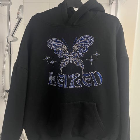Musta Leized huppari koko M. Käytetty 2 vuotta ja timantteja on pari irronnut.