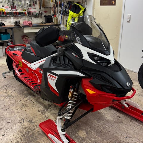 totaltekin jousi etupukkiin. Ollut paikoillaan Lynx Rave 2024. Kaupan päälle uusi rajoitinremmi