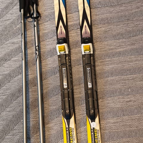 Suksisetti pitopohjalla 120cm sauvat 100 cm ja monot 32 kokoa