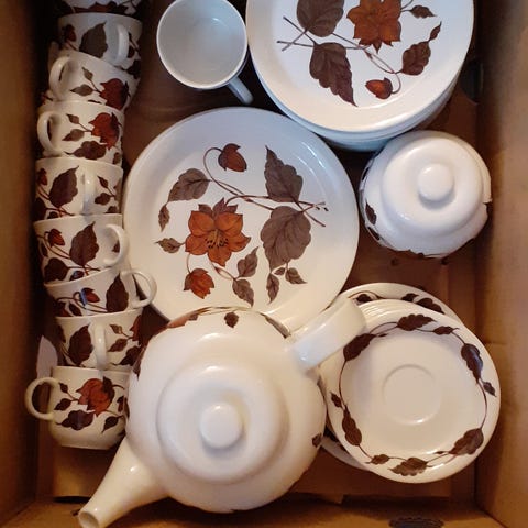 Myydään Arabian Katriina 12 kupin ja pullalautasen kahvikalusto. Lisäksi sokerikko ja kermakko. Kunnoltaan kuin uusi.