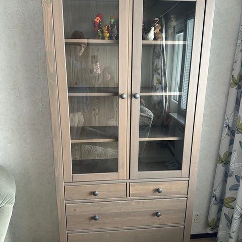 Hemnes, vitriinikaappi, harmaanruskea.