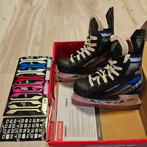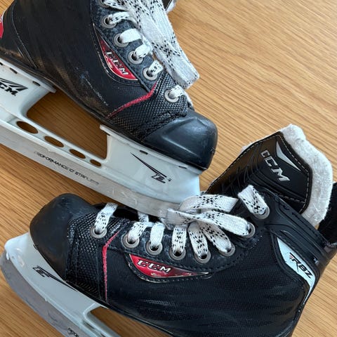 CCM Super Tacks jääkiekkoluistimet lapsille. Koko 31. Väri musta keltaisilla yksityiskohdilla. Luistimissa nauhakiinnitys ja tukeva varsi, joka tukee nilkkaa.
