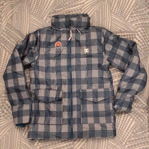Uusi vedenpitävä ja hengittävä takki. Ensin oli pojalle iso ja nyt kun etsin jemmasta oli pieni. Irrotettava huppu, vetoketjullinen lipputasku rinnassa, alahelmassa ja hihansuissa kiristys mahdollisuus.
