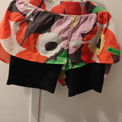 Adidas x Marimekko juoksushortsit.