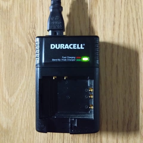 9 eri kameran akun laturia, vain yhtä on käytetty ja ohjevihko sekä alkuperäinen paketti mukana