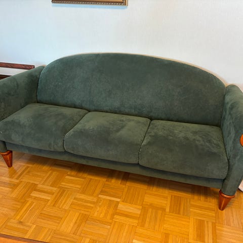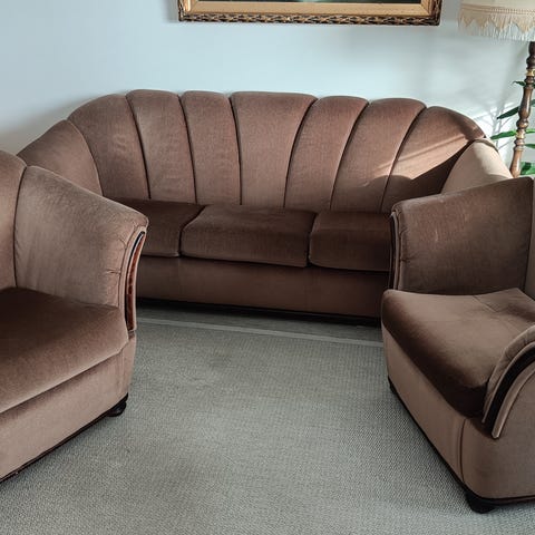 3 istuttava sohva,2 nojatuolia ja pöytä. Pöydän pinta vaatii fiksausta, muuten siisti. Vähän käytetty kalusto myydään kokonaisuutena savuttomasta ja eläimettömästä taloudesta. Vain nouto.