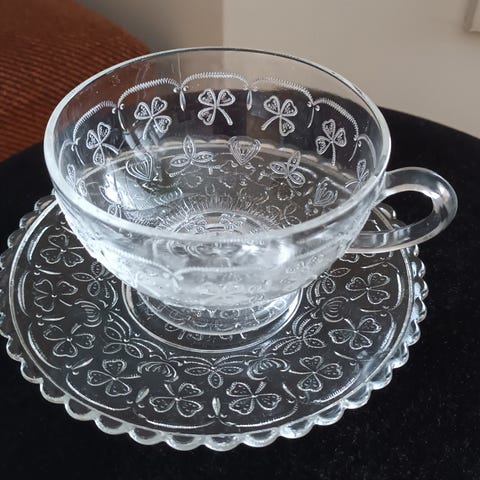 Teekupit 6kpl, jalallinen ja niissä on korvalla varustettu kahva. Soveltuu esimerkiksi tee- tai kahvikupeiksi tai jälkiruoka-astioiksi. Kuviointi kiertää kupin ympäri.