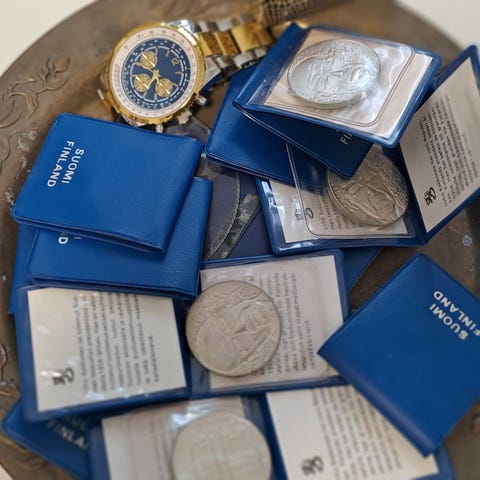 Kekkonen 10mk 9kpl, mm1978 lahti 25mk 2kpl ja yx Kalevala 50mk. Näistä voi ja saa esittää tarjouksen muodossa jonkunlaisen hinnan. Alta lipan ei vastailla. Paljookaa. Mut jos kiinnostelee ni kysäse, viestillä, koska puhelin ei kulje mukana muualle ku... Ei oikeestaa mihkää.