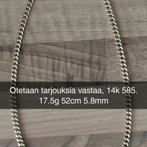 Olisi tälläinen 14k 108g ankkuriketju, pituutta on 58cm . Kuvissa näkyy leima muttei siitä kännykän kameralla saanut juurikaan irti..