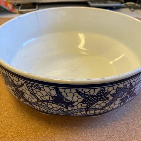 Arabian kulho 1938-1950 luvulta. Reunassa ylhäällä näkyy 2 pientä kulumaa. Muuten ehjä