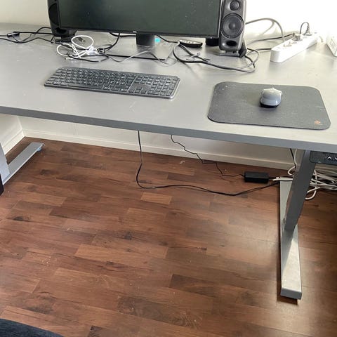 Hoitohuoneella käytössä ollut työpöytä, pinnassa naarmu siittä yks kuva. Jalat irti pöydästä ja kansi taitaa olla molemmin puolin tämän vuoksi käytettävä. Nouto tuirasta. Korkeus säädettävä.