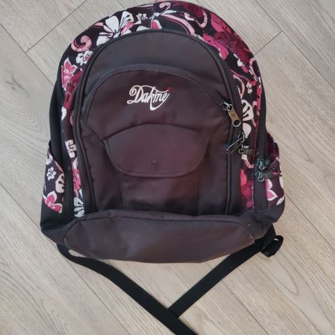 Dakine reppu koko Dakine 42cm x 27cm. Repussa on harmaa pohjaväri ja monivärinen kukkakuviointi. Useita vetoketjullisia taskuja ja lokeroita, mukaan lukien pehmustettu sisäosa esimerkiksi kannettavalle tietokoneelle tai tabletille. Säädettävät, pehmustetut olkahihnat ja pehmustettu selkäosa lisäävät käyttömukavuutta. Hyvä kunto, vähän käytetty.