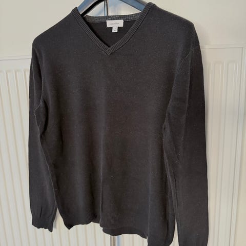 V-pääntie ja pitkät hihat. Väri musta meleerattu. Materiaali puuvillaa.