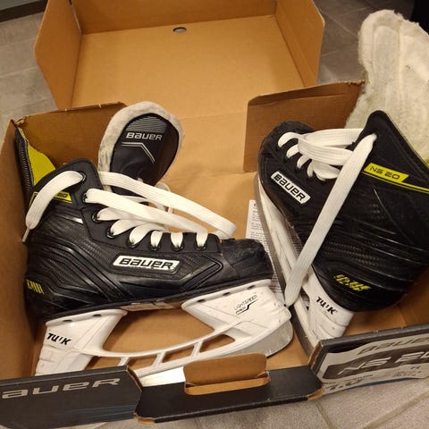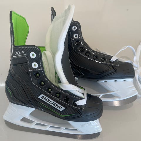 Bauer X-LP jääkiekkoluistimet juniorille. Koko EUR 33,5 (lasten koko noin 33), pituus noin 21,0 cm. Väri musta-valkoinen vihreillä yksityiskohdilla. Nauhakiinnitys. Soveltuu jääkiekkoon ja muuhun jäällä luisteluun lapsille/junioreille.