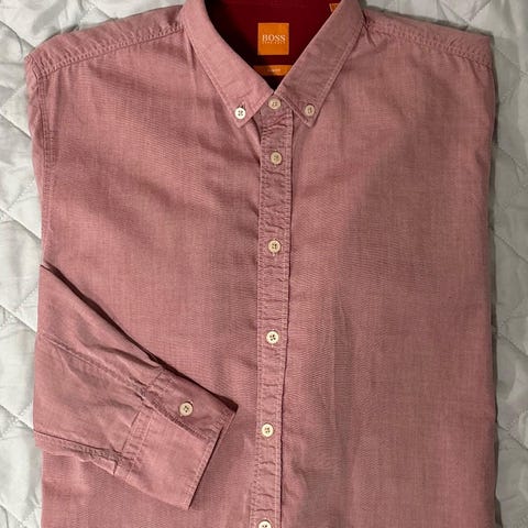 Hugo Boss Slim Fit miesten kauluspaita. Koko L. Väri sininen, hillitty kuviointi. Materiaali puuvillaa. Pitkät hihat ja perinteinen kaulus. Sopii arki- ja toimistokäyttöön sekä siistimpään pukeutumiseen. Rinta 52 cm, Hartiat 46 cm, Hihat 67 cm, P75 cm.