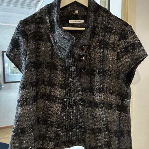 Harmaa neule, jossa irrotettava liivi.