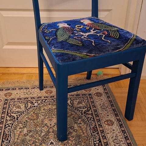 Neljä jalkainen jalusta ja uusi verhoilu.