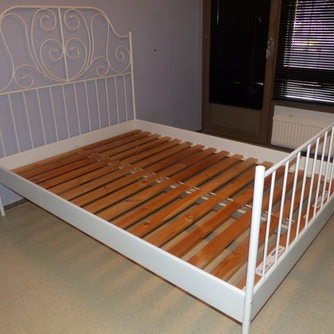 Giving away the bed frame. I attempted to paint it black as you can see. The bed has been bought second-hand and used by me for a few months. The legs may need some reinforcement as they are a bit lose (all LEIRVIKs problem it seems).