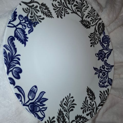 La Primula syvä lautanen sininen-valkoinen posliini. Lautasen reuna on koristeltu sinisillä raitakuvioilla ja keskiosa on valkoinen. Valmistusmaa Italia (merkintä pohjassa: La Primula S.A.L., Made in Italy). Soveltuu esimerkiksi keitoille ja pastaruoille.