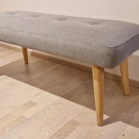 Jyskista alunperin ostettu penkki, jossa valkoinen runko ja vaalea istuinpehmuste. Penkin alla on kolme irrotettavaa punoskoria säilytystä varten sekä avohylly. Sopii esimerkiksi eteiseen istuimeksi ja pientavaroiden säilytykseen.