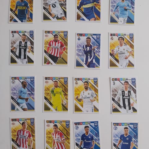 Panini jalkapallo keräilykortit. Pakettiin kuuluu useita eri joukkueiden pelaajakortteja sekä joukkueen logoaiheinen kortti.