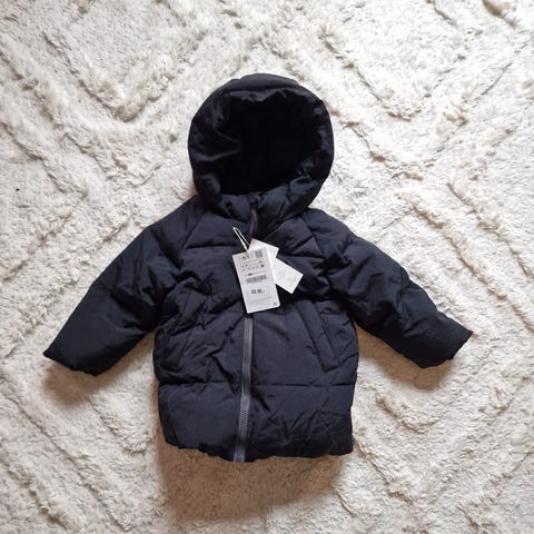 Erittäin hyväkuntoinen lasten vaaleanpunainen untuvatakki 1-2 vuotiaalle. Takissa on huppu, tuplavetoketju, vetoketjutaskut ja logo näkyvillä.
