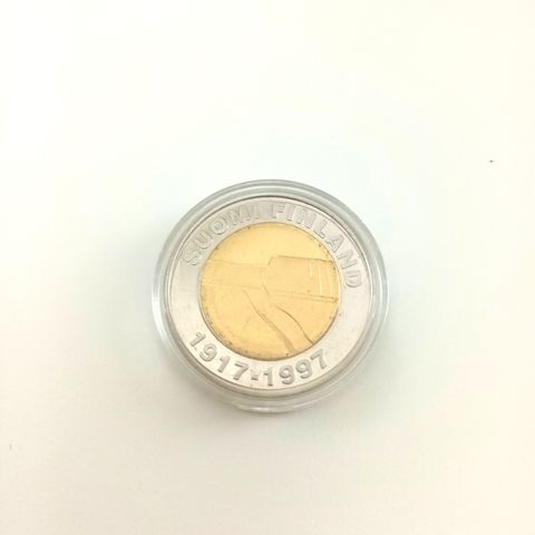 Myydään Suomen 25 markan juhlaraha vuodelta 1997 suojakotelossa.