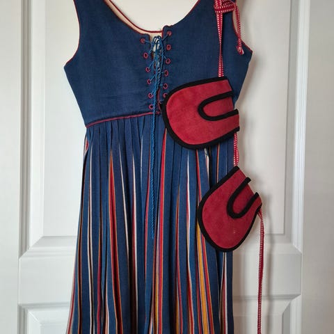 Myydään vanha Alavuden kuoropuku. Ollut siististi varastoituna ja käytössä 40-luvulla. Paita löytyy myös. Puvun kokonaispituus olkahihnasta helmaan 116cm, hameosan mitta 75cm, vyötärö 2x38cm, kainalosta 2x42cm, helman leveys 2x105. Paita kainalosta 2x50. Noutomahdollisuus Pori-Forssa akselilta.