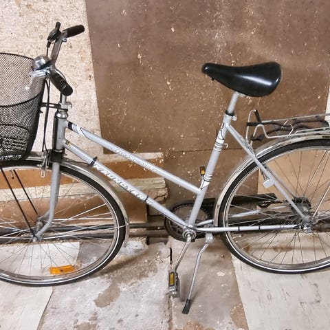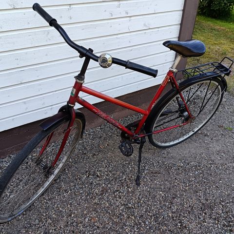 Helkama kaupunkipyörä, naisten malli. Runkokoko 52 cm ja 28 tuuman renkaat. Takana on tavarateline kuljetusta varten. Noin neljä vuotta vanha pyörä, paperit tallessa. Ei ole yli vuoteen käytetty, nyt talvella kun testasin niin polkiessa ketju tms rahisee. Huollettu keväisin asianmukaisesti.