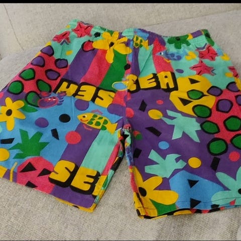 Pitsikuvioiset luonnonvalkoiset shortsit (koko S). Voin postittaa.
