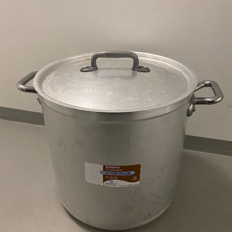 Ruostumattomasta teräksestä valmistettu kattilasetti. Useita eri kokoisia kattiloita, osassa sivukahvat ja osassa yksi pitkä kahva. Soveltuvat yleiseen ruoanlaittoon liedellä. Pinta harjattua terästä, sisä- ja ulkopinnoissa käytön jälkiä. Merkitsemättömät, tarkka tilavuus ei tiedossa.