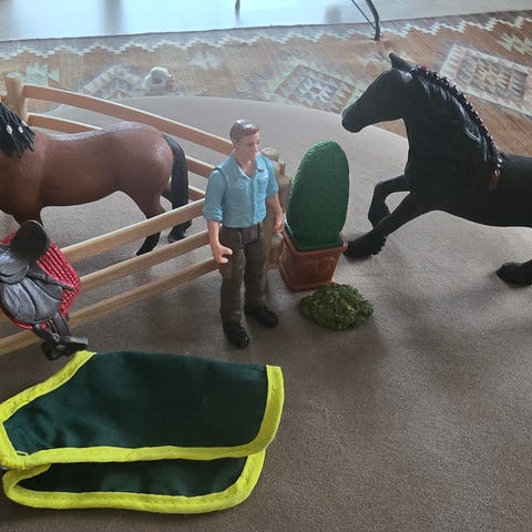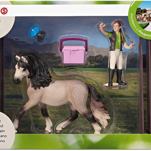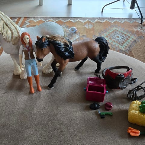 -niminen Schleich setti jossa kaikki osat tallella. Erittäin hyvässä kunnossa, paitsi tamman kyljessä naarmu josta kuva.