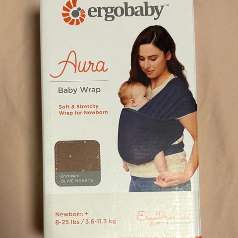 Myydään musta Ergobaby Aura -kantoliina vauvalle. Pehmeä ja joustava trikooliina, helppo sitoa myös aloittelijalle. Sopii vastasyntyneestä alkaen noin 3,6–11,3 kg (8–25 lbs).