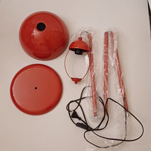 Ikean jalkalamppu, mukaan tulee tuo iso polttimo.