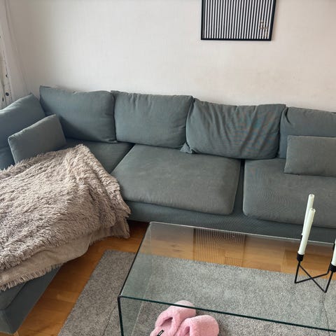 Iso tumman vihreä kulmasohva, ikean tidafors sohva. Koiratalous, nouto Tukkurila/Koivuhaka. Sohvan saa kolmeen osaan kuljetusta varten.