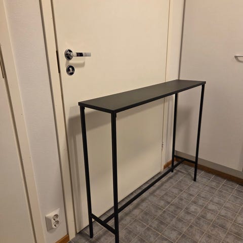 Myydään musta metallinen konsolipöytä hyvässä kunnossa. Mahtuu kokonsa puolesta erinomaisesti käytävälle tai eteiseen.