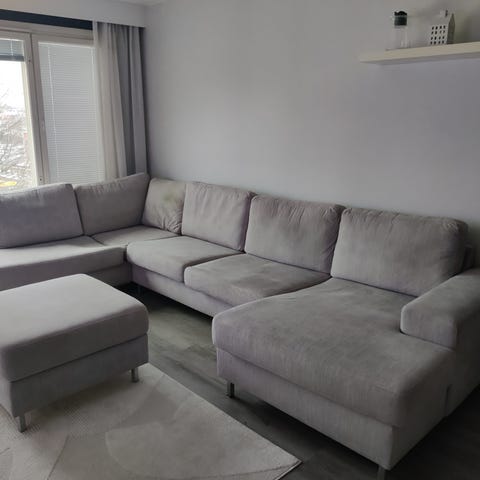 Myynnissä Vilmerssin valmista laadukas runkoinen ja isohko kulmasohva. Kauniisti aavistuksen sivulle kaartuvat käsinojat ja valkolakatut puujalat tekevät sohvasta erittäin kauniin ja näyttävän. Sohvan runko ja jouset ovat luonnollisesti ehjät. Istuin ja selkätyynyjen kankaat ovat irroitettavissa pesuun. Sohvaan on tehtaalta lähtiessään valittu ympäriverhoillut, istuin ja selkätyynyjen kankaat. Tämä luonnollisesti tuplaa kankaan käyttöiän. Korket jalat mahdollistavat helpon puhtaanapidon sohvan alta. Sohva on ollut kahden aikuisen taloudessa. Heillä ei ole lapsosia, eikä lemmikkieläimiä. Sohvan tyynyt mukavan pehmeässä ryhdissään. Kangas siisti ja tahraton. Sohvan kunnossa ei negatiivista huomautettavaa. Vaikka sohva on näinkin iso se on erittäin helppo ja kevyt kuljettaa / kantaa sillä sohva menee kolmeen osaan + tyynyt. Sohvan hinta: 739€