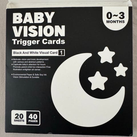 Kontrastikortit vauvalle. Tukee näön kehitystä, vauvan helpoo keskittyä näihin, kun vauva näkee alussa värit mustavalkoisena