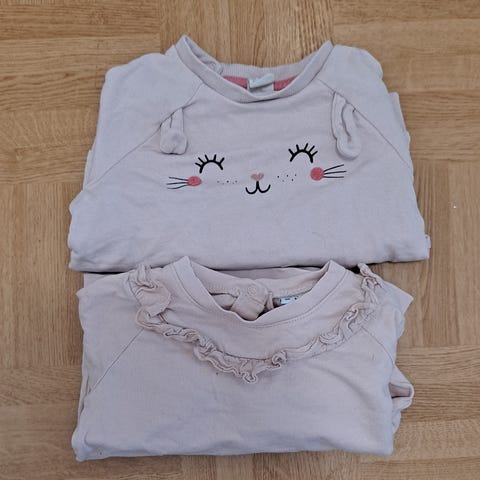 Sinsayn college housut ja paita koossa 80. Muutoin siistit, mutta paidan yläosassa joku rasva tahrat (näkyy kuvissa). Paljaalla silmällä aika huomaamattomat, mutta salamalla otetuissa kuvissa pomppaavat silmään enemmän.