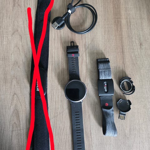 Myydään siistikuntoinen ja täysin toimiva Polar Vantage V2 Shift Edition -kello. Kellotaulun ympärillä pientä kulumaa, mutta silti yleisilmeeltään siisti, kellotaulu ehjä. Silikoniranneke sekä lyhyellä että pitkällä hihnalla ja lisäksi käyttämätön nahkaranneke punaisilla ompeleilla. Mukana latauspiuha. Kello palautettu tehdasasetuksille.