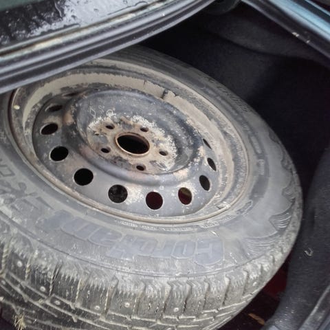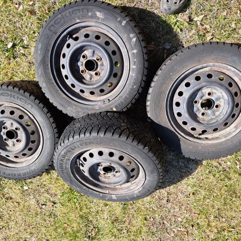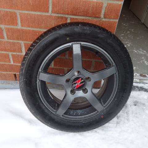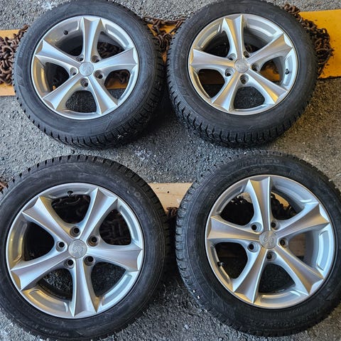 Alumiinivanteet renkailla. Vanteen koko 7Jx16H2 ja ET40. Jako 5x114.3. Yksi rengas sakoilla, yksi lähellä sakkorajaa ja 2 ajettavaa rengasta. Yhdestä vanteesta hiukan maali lähtenyt puolien vierestä (näkyy kuvassa)