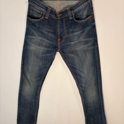 Nudie Jeans slim fit farkut miehille, vyötärökoko W32 ja lahkeen pituus L34. Siisti fade värissä. Mallin nimi ”Thinn Finn”